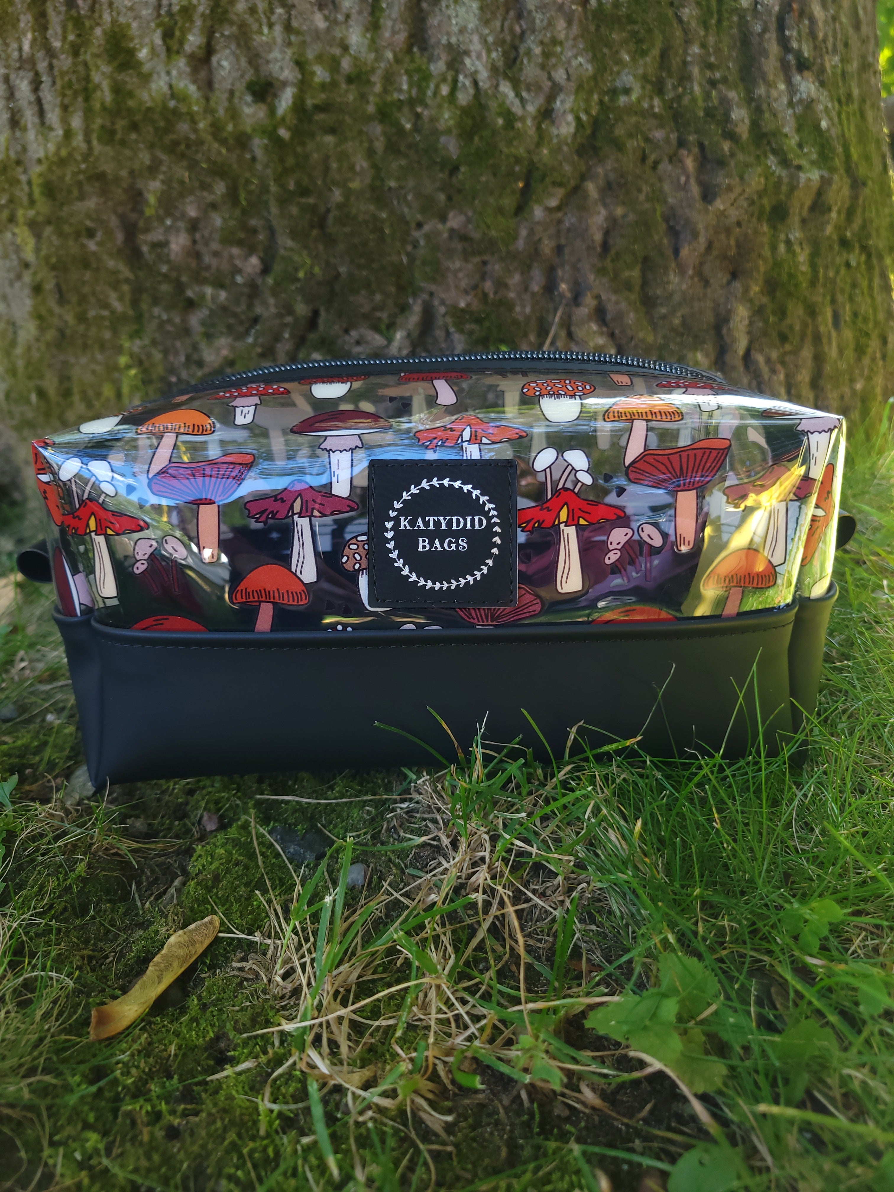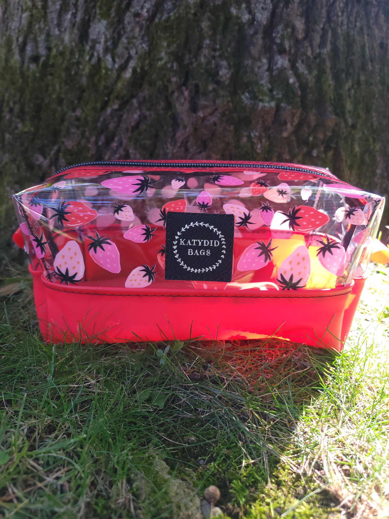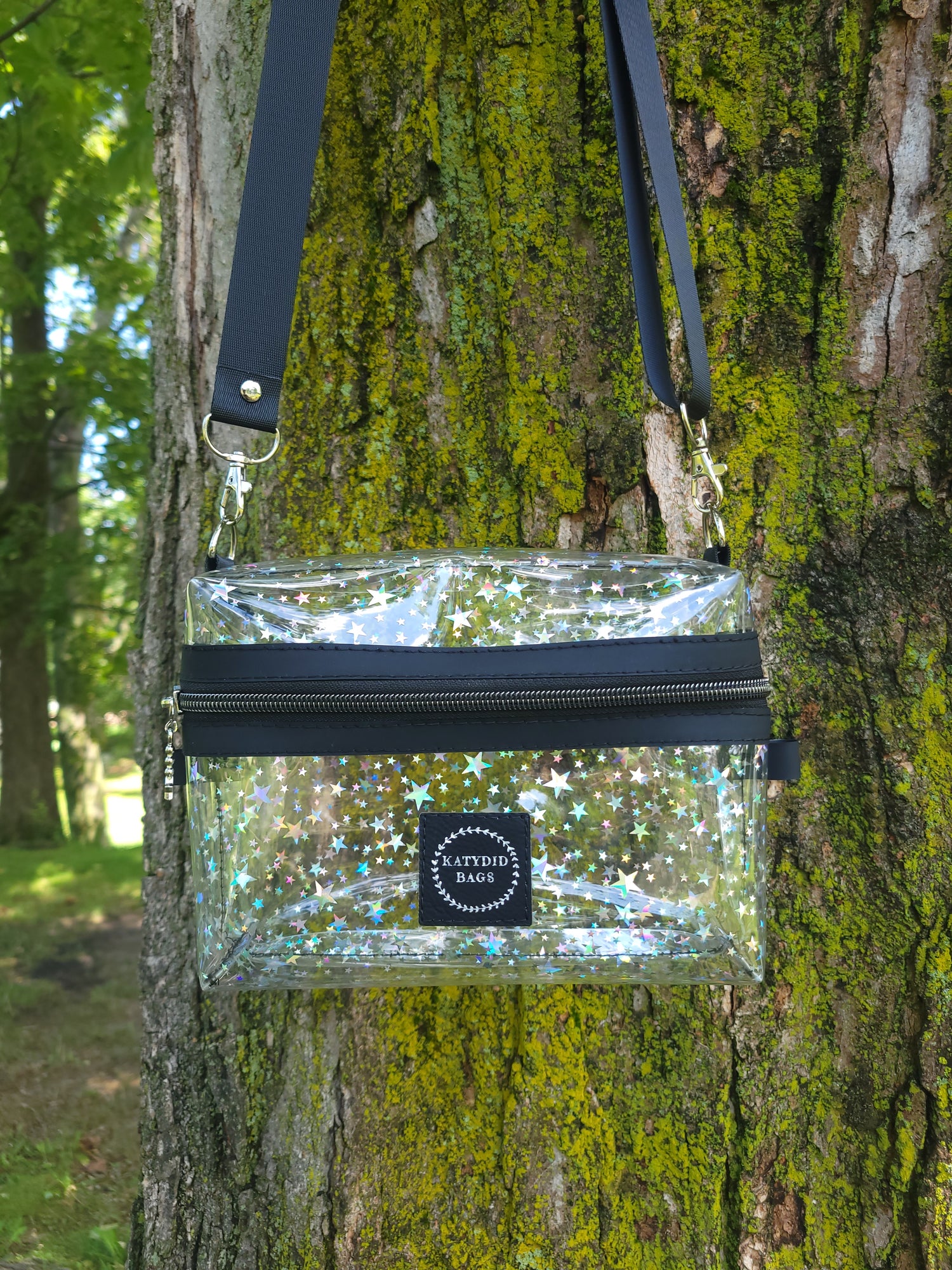 This stylish clear vinyl cross body bag is perfect for your knitting...