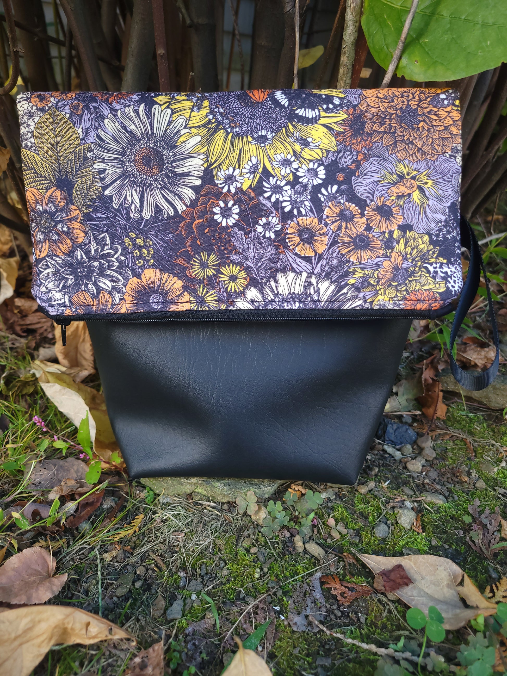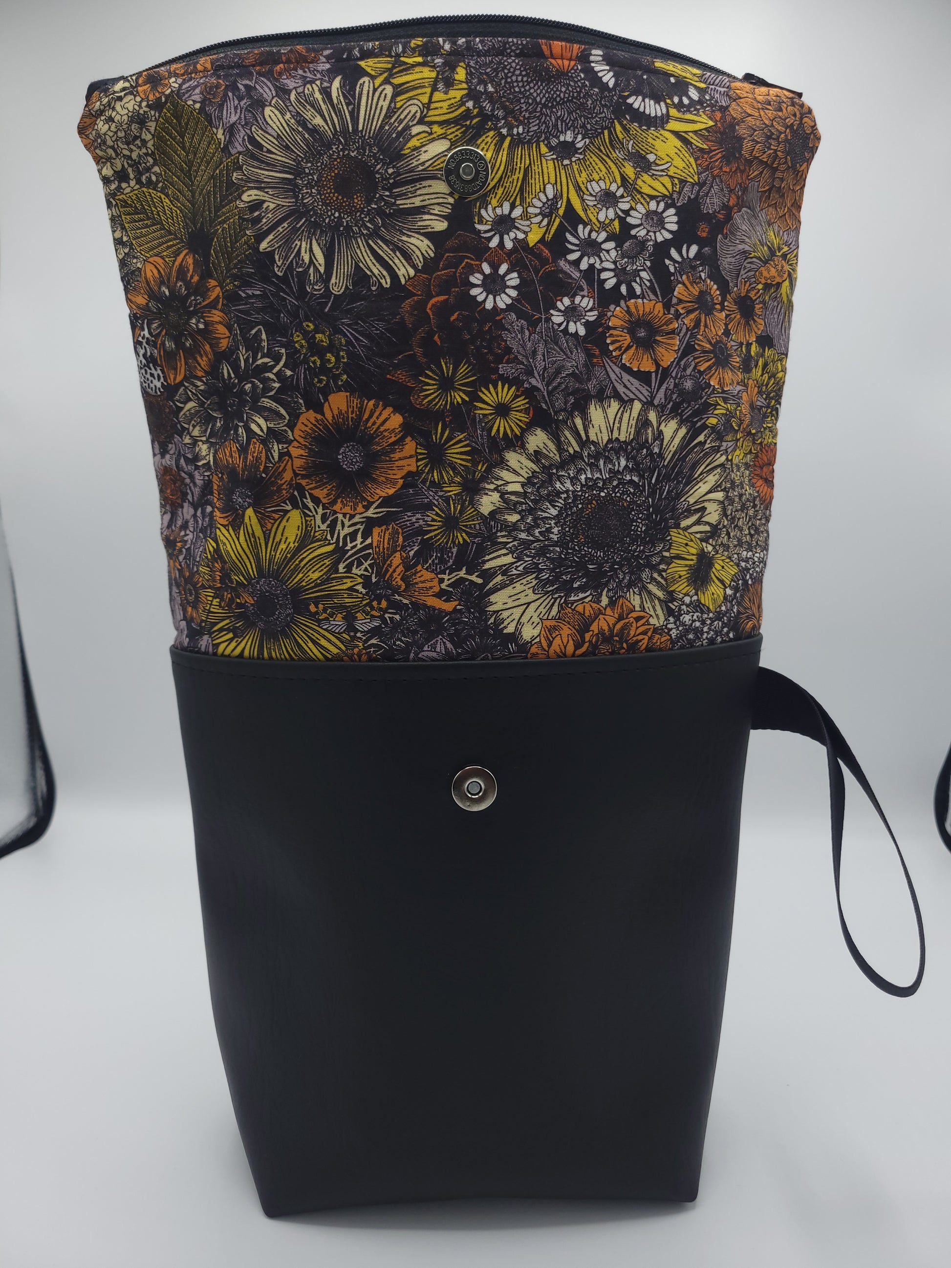 These beautiful autumnal fold-over project bags are perfect for a medium to large project. Plenty of space 3-4 skeins. All bags are lined with water resistant canvas to keep your projects secure. There is also a top zipper and a magnetic snap to keep the bags fold in place. There is also a side strap to carry around your project.