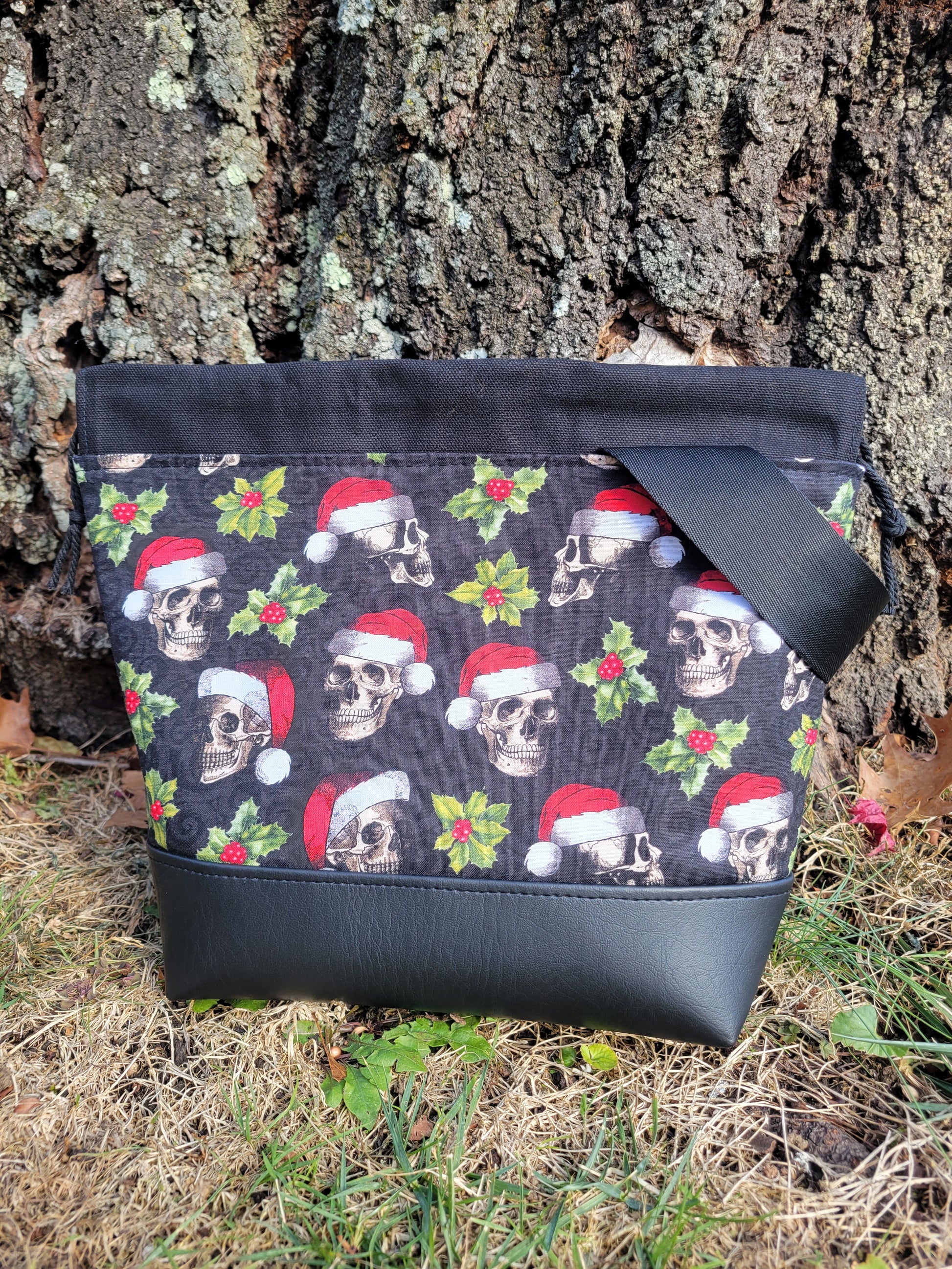 Embrace your dark side this holiday season with our Christmas Skulls Drawstring project bag! Perfect for all your gothmas crafting needs, this bag features a drawstring closure and ample space for all your projects. Don't be afraid to add a little spooky flair to your holiday creations!