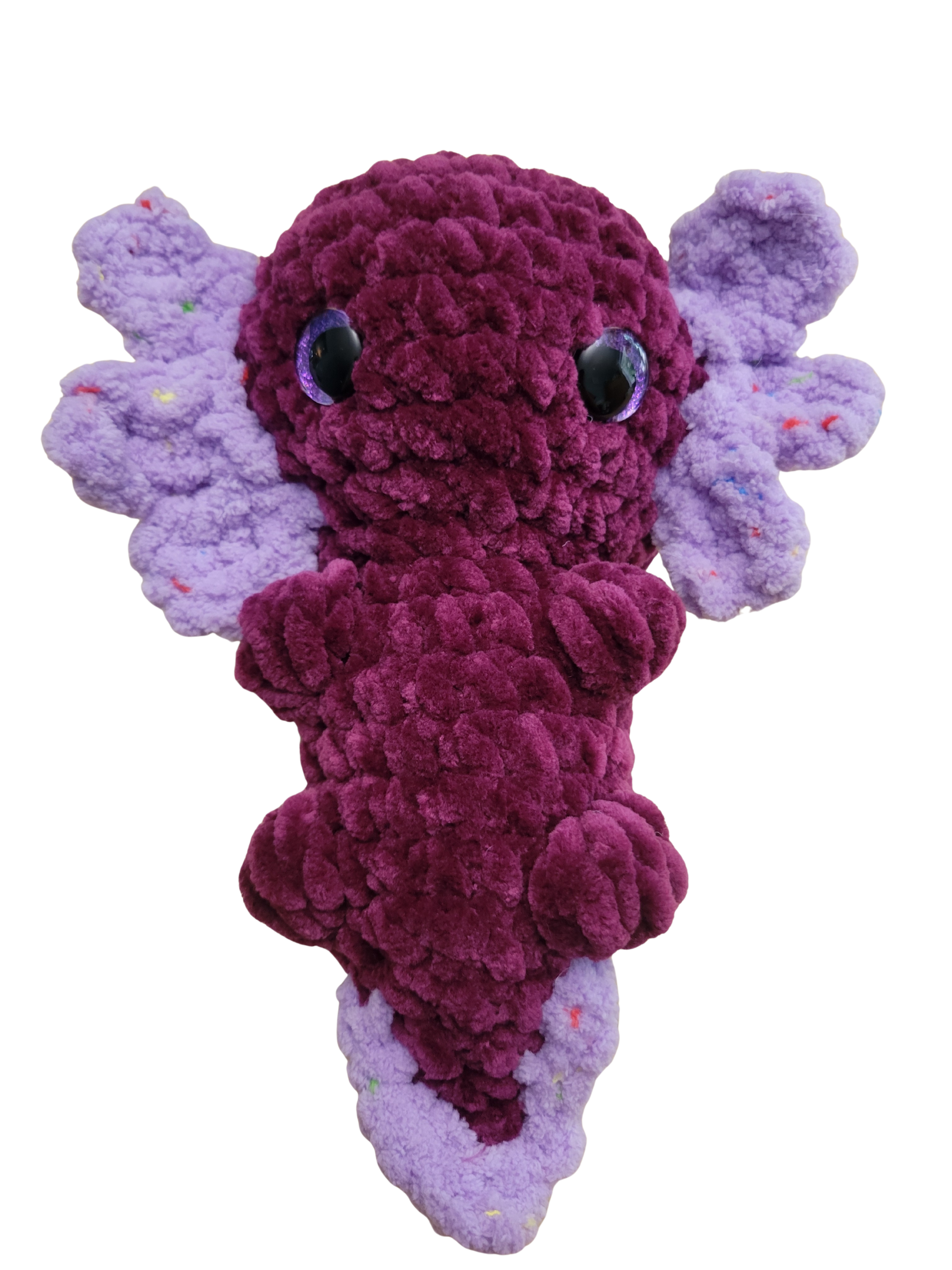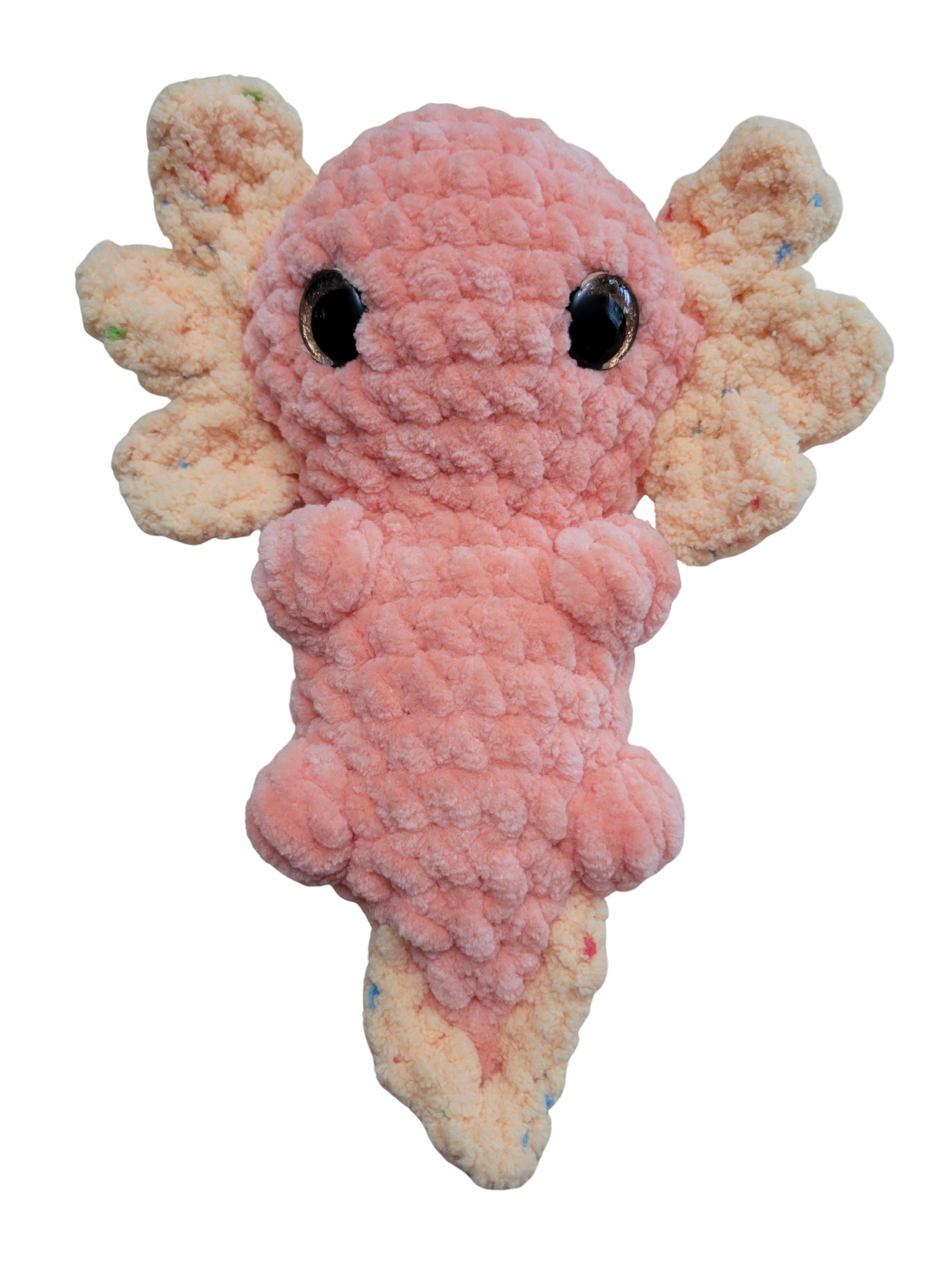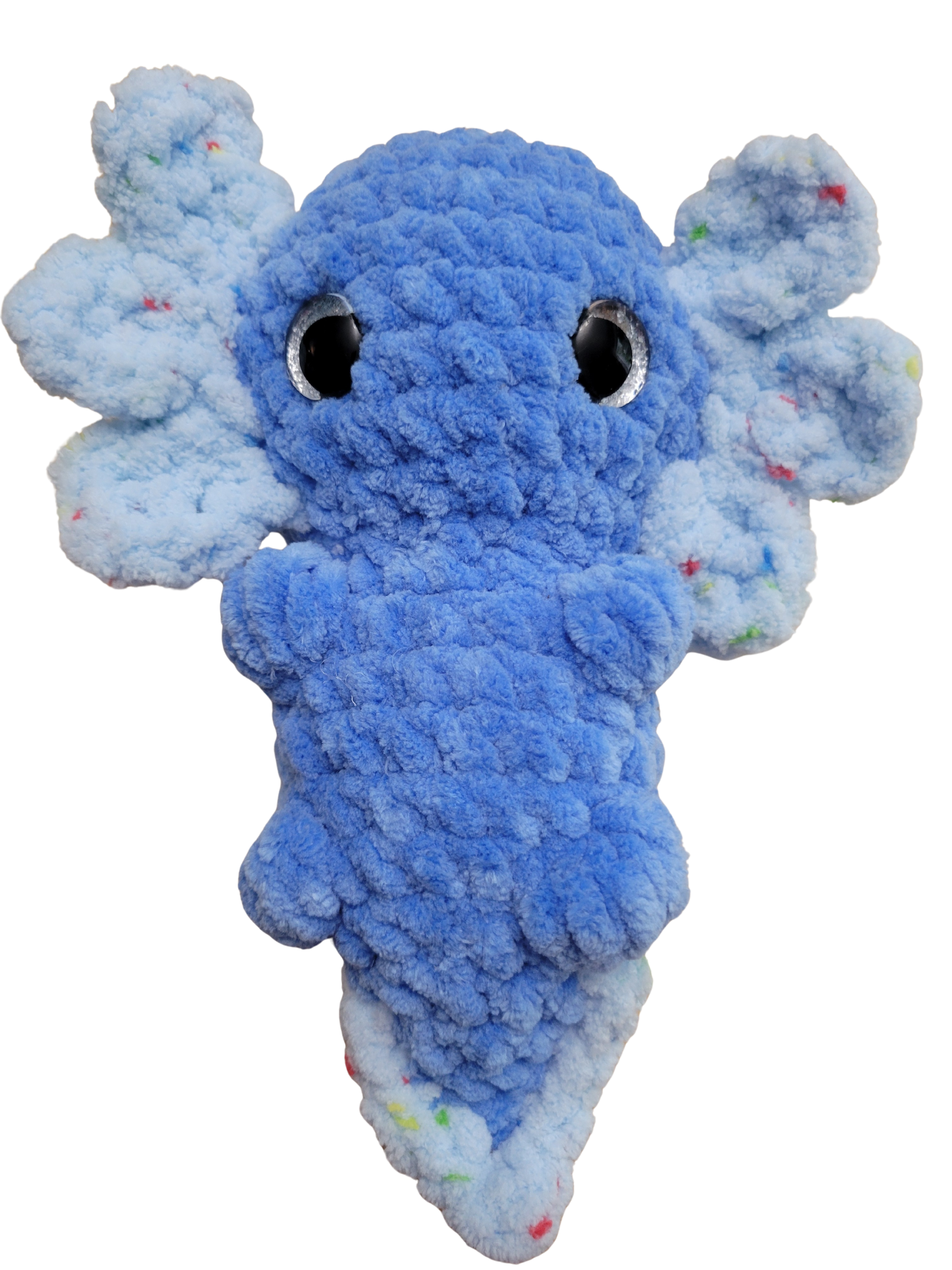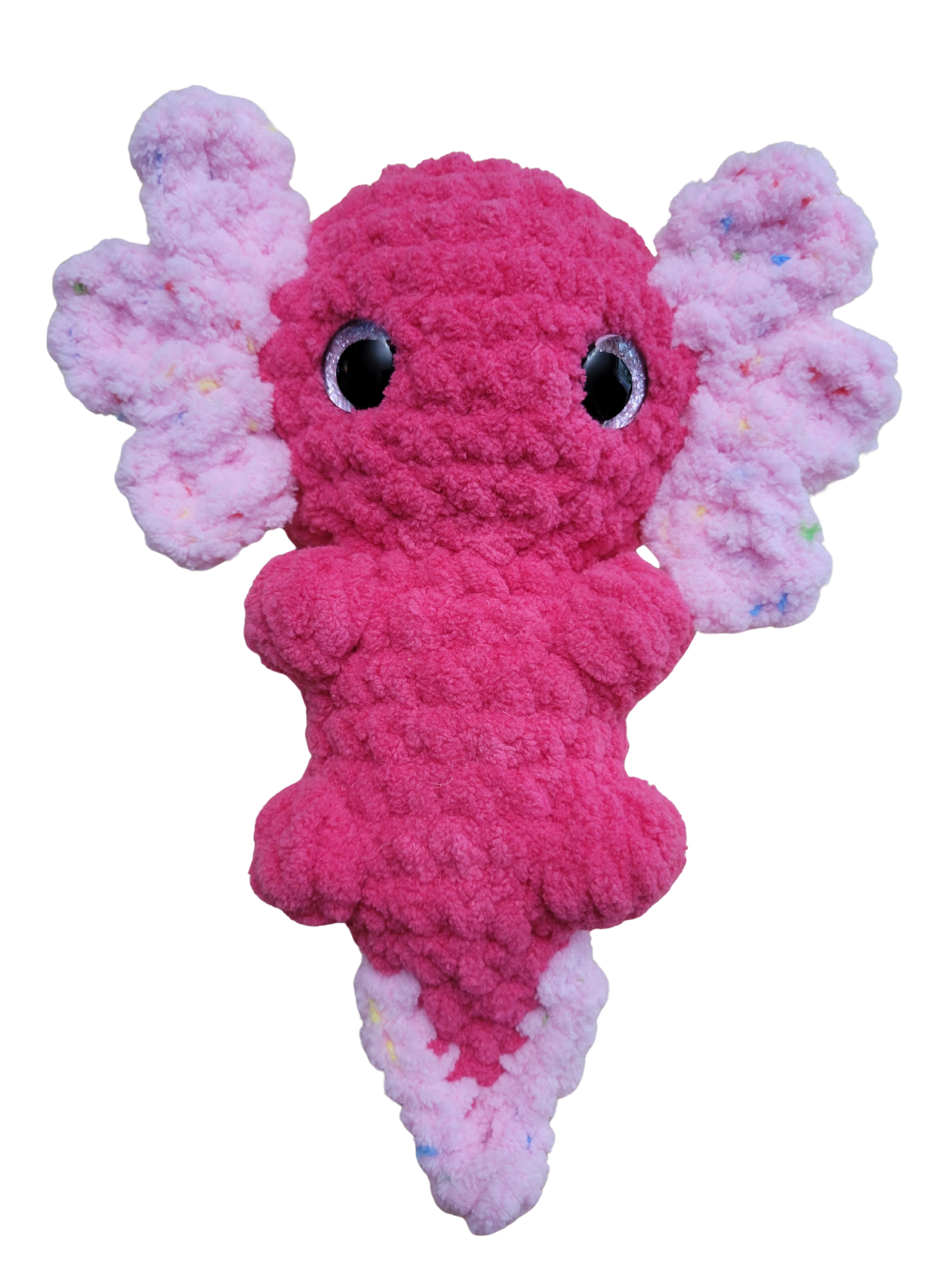 "Get ready to snuggle up with these adorable Crocheted Axolotl Plushies! Made with love and skill, they're the perfect addition to any plush collection. Brighten up your day and add a little axolotl magic to your life with these quirky critters. (Warning: may cause extreme cuteness overload!) "