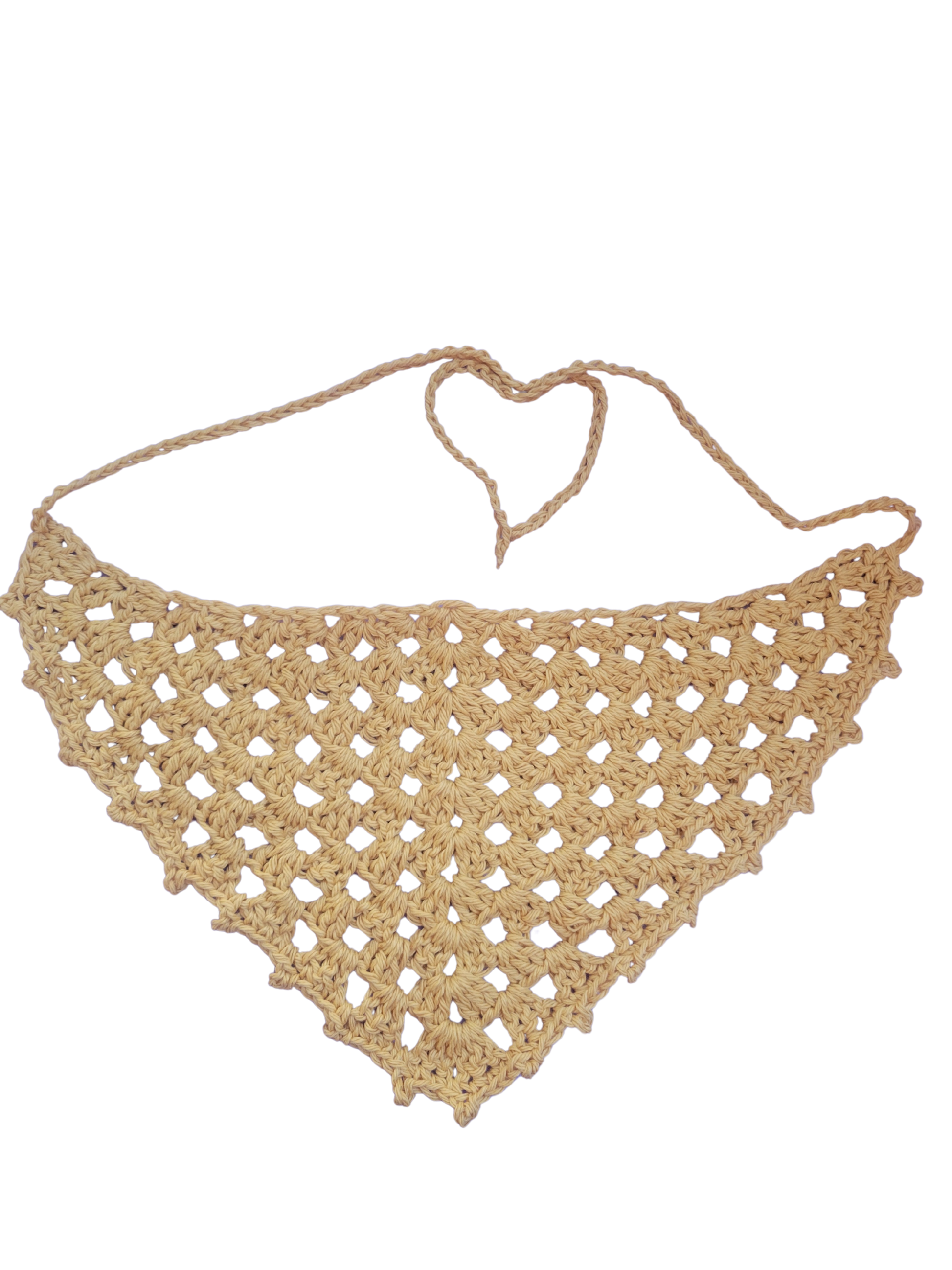 Make a statement with this unique crocheted bandana! Perfect for adding a touch of quirkiness to any outfit, this bandana is handcrafted with care and features a stylish crocheted design. Get ready to turn heads and stand out from the crowd with this playful accessory!