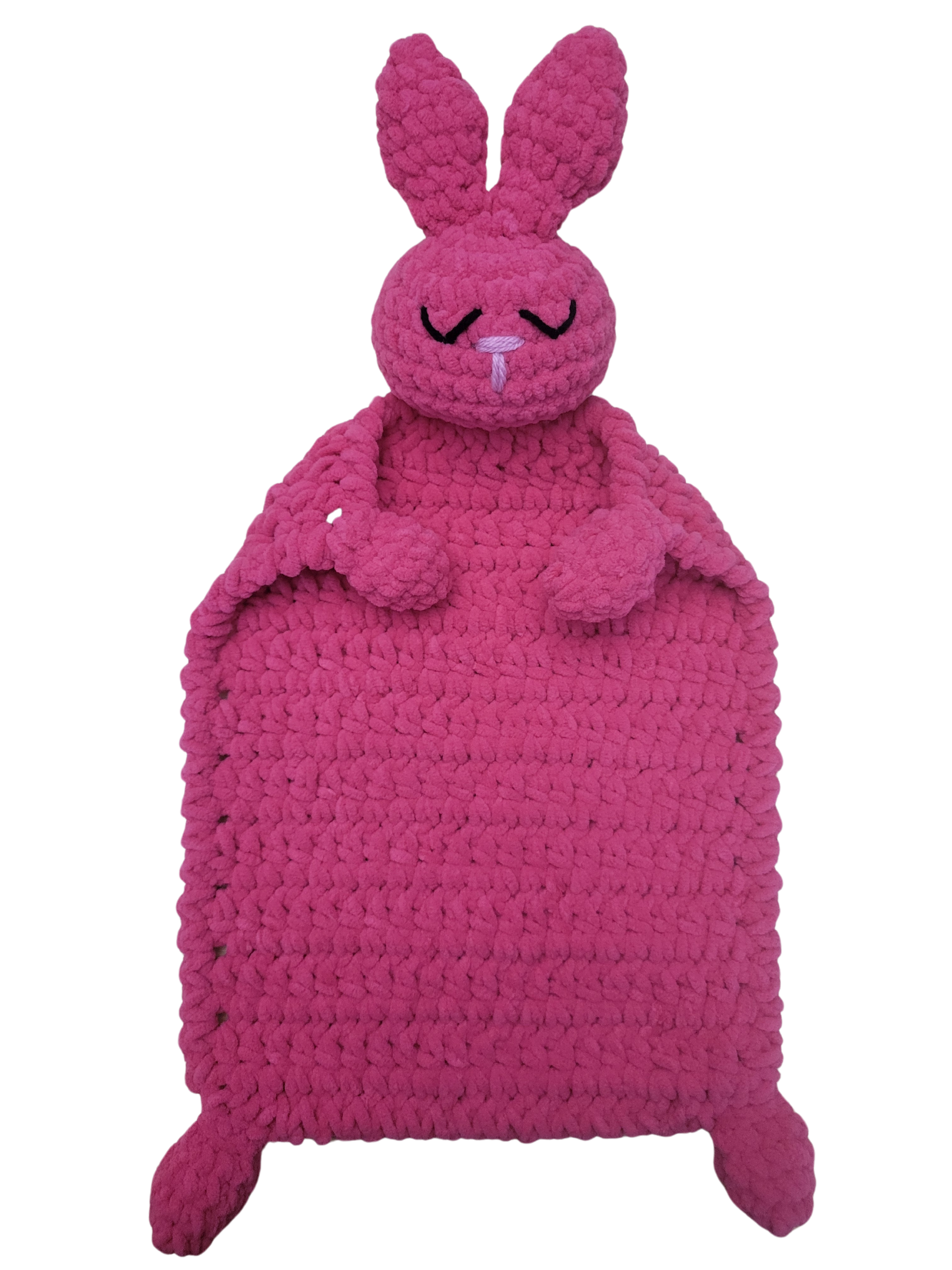 This crocheted bunny lovey is the perfect snuggle buddy for your little one. Soft, cuddly, and handmade with love, it's sure to become a beloved companion. The perfect gift for any occasion that is guaranteed to bring a smile and lots of love (and hugs) to your child's life.