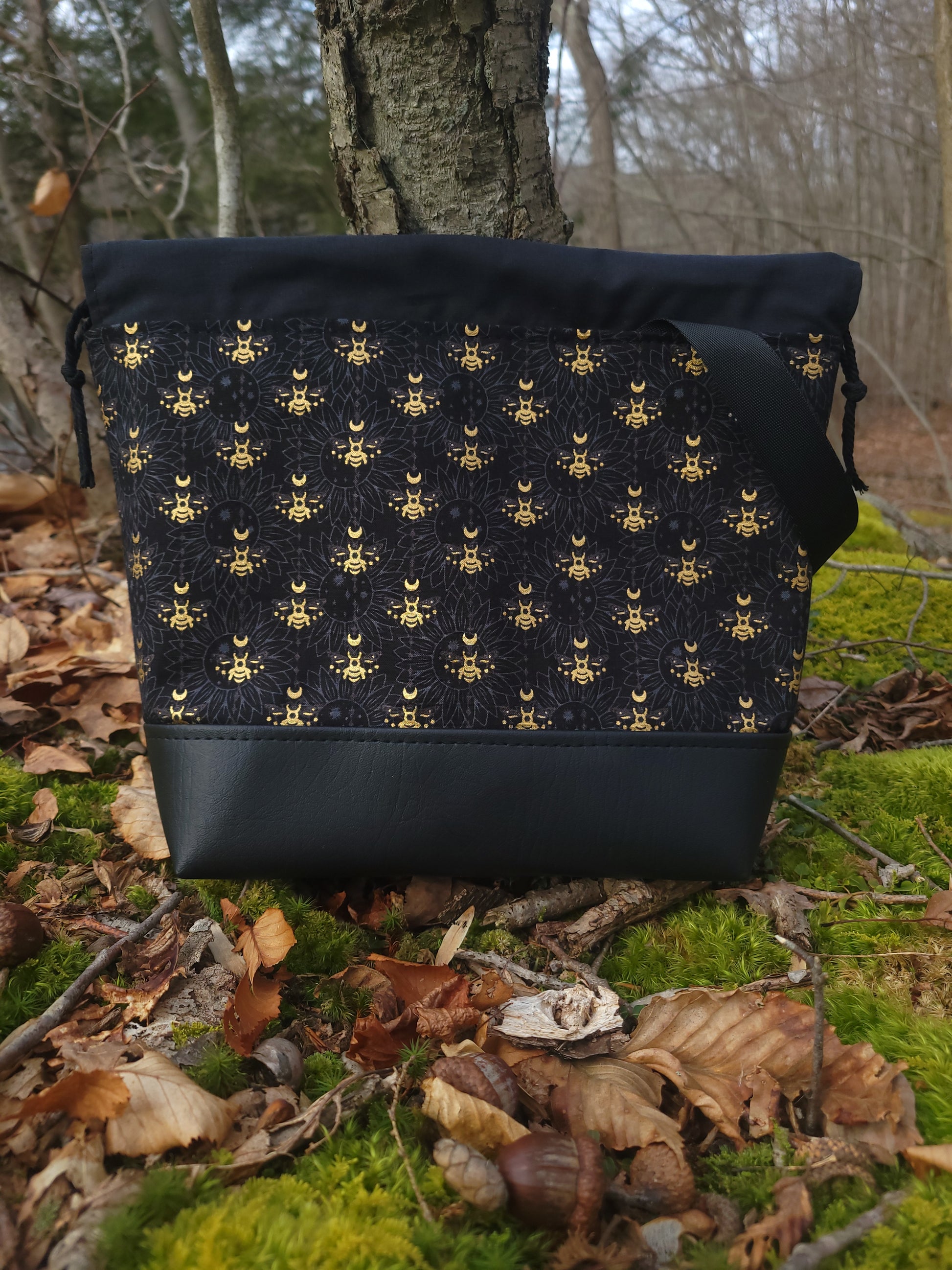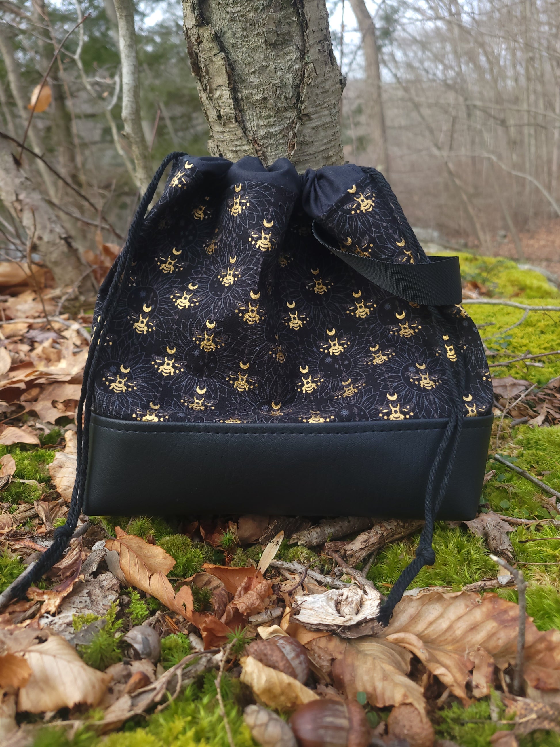"Buzz around town in style with our Golden Bees Drawstring Bag! Made with a sleek and durable design, this bag will be your go-to for all your on-the-go needs. Its golden bees design is sure to make you stand out from the crowd. (Bee-lieve us, you'll love it! 🐝)"