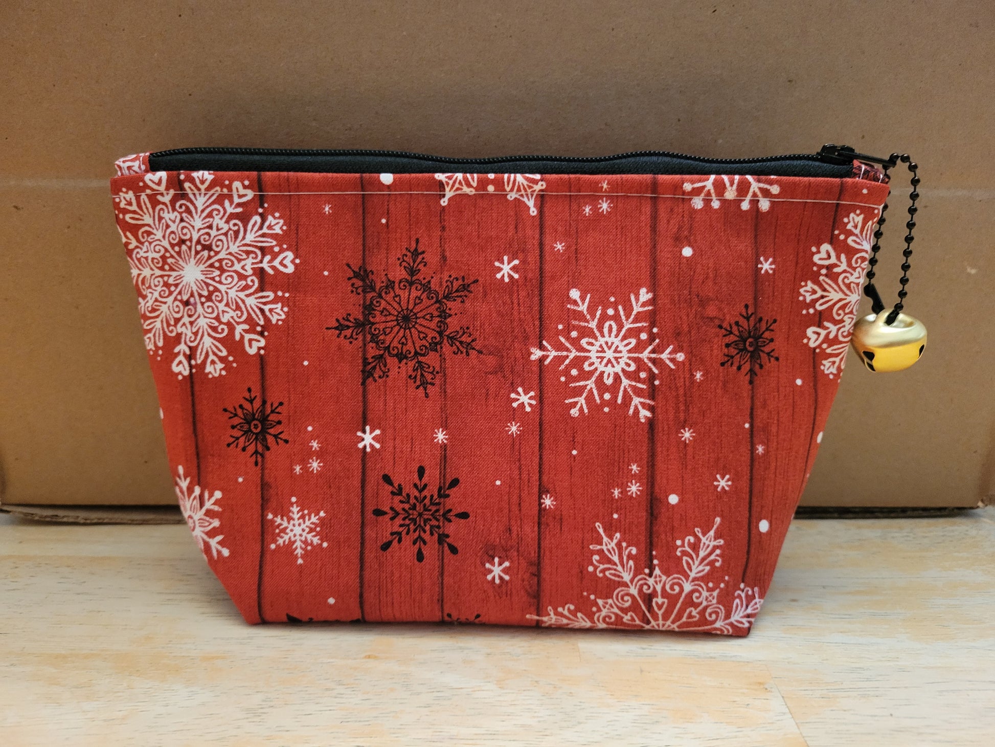 Holiday pouch with jiggle bellsGet ready to jingle and mingle with our holiday pouch! Featuring a convenient zipper and adorable a jiggle bell, this pouch is perfect for storing all your holiday essentials. Stay organized and festive in style.